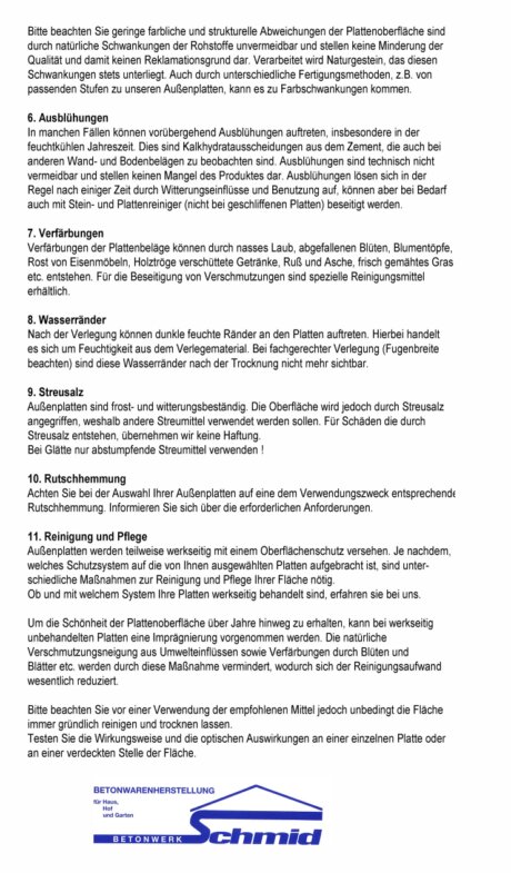 Hinweise - Betonwaren Schmid